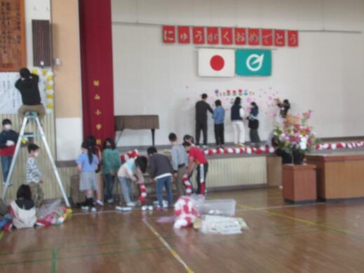 本日、令和5年度の入学式です。21名の新入生をお迎えします。昨日、4年生~6年生が準備をしてくれました。掃除から飾りつけまで一生懸命働いてくれました。自分の担当の仕事が終わると「ほかにすることはありませんか?」と意欲的でした。身につけさせたい3つの力の「主体的に動く力」がしっかり育ってきていることを感じます。本日は、代表で5年生と6年生が入学式に参列します。暖かく21名を迎えてくれることでしょう。