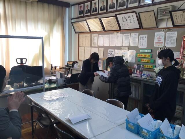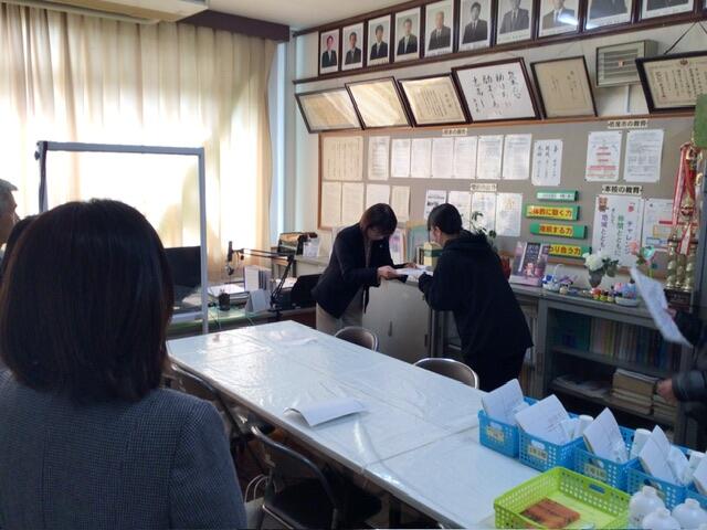 6年生が以前取り組んだ税に関する絵はがきコンクールで、2人の子どもが入賞しましたので、今日のお昼休みに玉名法人会より表彰に来ていただきました。フッ化物洗口の準備前ということもあり、少々雑然とした校長室でしたが、賞状と副賞を渡していただきました。6年生みんなで取り組んでくれ、みんなに参加賞もいただきました。ありがとうございました。