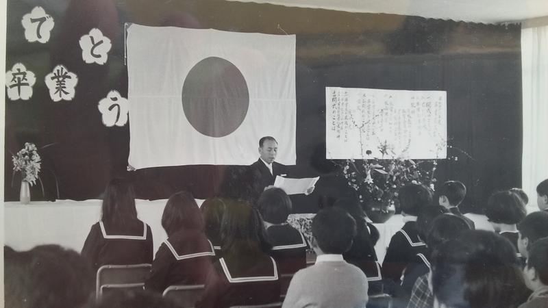 卒業式は、現在の音楽室で行いました。中学校の制服での参加で、少し大人になった気分でした。
