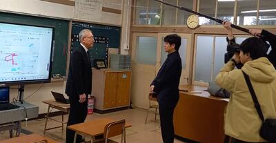 昨日、KKTのキャスター・カメラクルーの方々が来校し、荒尾市全小学校で本格導入された「タブレットによる児童見守りサービス」の取材を受けました。