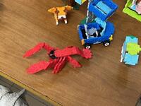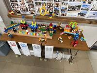 昔ながらのブロック(通称レゴとか呼んでいましたよね)よりも1つ1つのパーツは薄く、種類もたくさんあるようです。同じ色のものをいくつも使ったり、形をうまくかみ合わせたりして緻密な作品が並んでいました。よほど集中して仕上げたのでしょうね~。