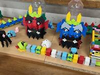鬼の顔や建物、動物、乗り物、ザリガニでしょうか。カラフルな色だけでなく、その細かなつくりに驚きました。