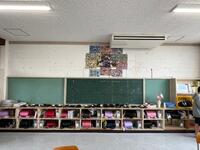 そして、6年生の教室に入ってみると、後方の掲示板は、すっかり掲示物が取り外され、毎月の様子を撮りためた写真だけが飾られていました。私物の道具も片づけられ、徐々に巣立ちの時を迎える準備が進められています。残り少ない小学校生活を大切に…。