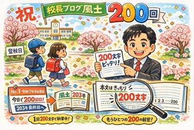 この校長ブログ「風土」も令和7年4月8日に№1を出して以来、今日で200回目を迎えることになりました。子供たちが登校する日に必ず発行していますので、本年度は残り3日(3年生以下は2日)ですので、基本的には203号が最終号となる予定です。