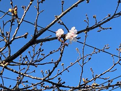 正門横の桜の花が開きました。この3連休のぽかぽか陽気に誘われたのでしょう。まるで、今日の全学年の修了及び明日の6年生の卒業をお祝いしているかのようです。