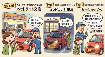 3月12日にヘッドライトが切れていたので、カーショップに行って交換してもらいました。(「風土」3/13付け№197参照)