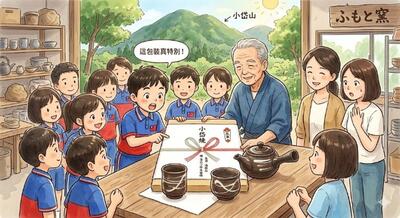 来週、台湾の小学生一行が来校するため、荒尾に因んだお土産を渡そうと思って、小岱焼の窯元に行ってきました。