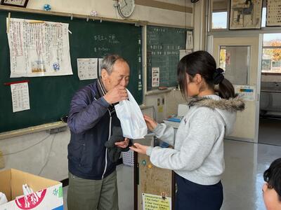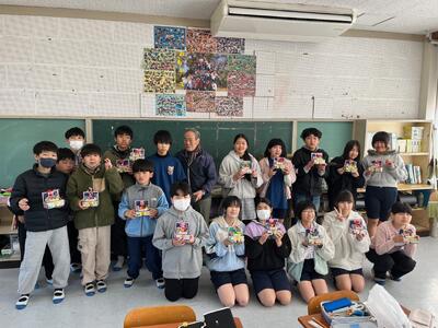 午前中に桜山げんきかいの満平さんが来校され、6年生一人一人に手作りのプレゼントをしてくださいました。