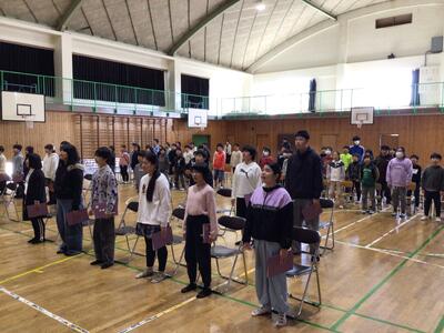 本年度最後の校歌斉唱です。