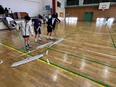 「感謝のそうじ」気持ちも体育館もすっきりしたことでしょう!(6年生の皆さんありがとうございました)