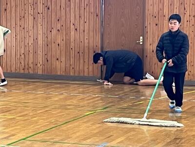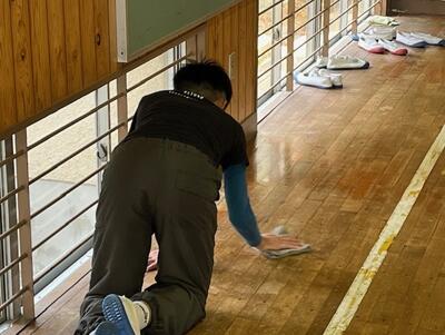 6年間お世話になり、来週の卒業証書授与式が行われる体育館を全員できれいにする取り組みでした。