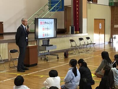 桜山げんきかいの満平さんには、本年度もクリーン作戦や桜山ふれあいげんき祭りなど、地域と学校の協働した取組みにおいて、子供たちが活躍できるように支えていただきました。感謝の気持ちでいっぱいです。6年生の子供たちは、6年間、多くの地域の方に支えてもらい、本当に幸せ者だと思います。大人になったとき、今度は支える側になれるように、地域の方との思い出を大切にしてほしいと思います。