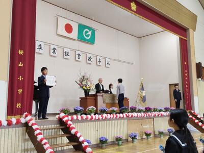 本日をもって、令和7年度の教育課程が修了しました。各学年の代表児童の発表があり、勉強や生活面で頑張ったことの発表がありました。「友達や先生に聴いて、勉強がよくわかるようになった」「挑戦する大切さを学んだ」「困っている人がいたら、進んで声をかけていきたい」「将来の夢」など、今年1年間の頑張りやこれから挑戦したいことについて、気持ちのこもった発表ばかりでした。桜山小学校のみなさん、本当に1年間よく頑張りました!