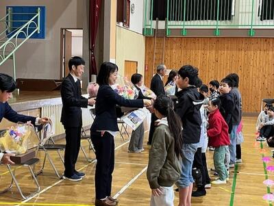 総務委員の代表挨拶の後は、代表児童から花束の贈呈