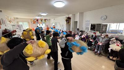 次に、利用者の方々と室内運動会をしました。大玉転がしや、玉入れを一緒にしたのですが、利用者のことを考えて優しく接したり声をかけたりする姿をうれしく思いました。