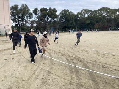 12月19日(金)に持久走記録会(名称は、児童の代表委員会で決定します)が行われる予定です。それに向けて、子供たちは学校に登校後、毎朝グラウンドを走って体力づくりをしています。