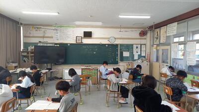 2時間目から4時間目にかけて3年生から6年生の子供たちを対象に県学力・学習状況調査がありました。国語、算数、質問紙調査の3つです。40分という限られた時間内に、全ての問題に解答することは大変だったと思いますが、最後まであきらめずに頑張ることができたようです。結果については、後日ご家庭に分析も踏まえた結果通知をお渡ししますので、ご確認ください。