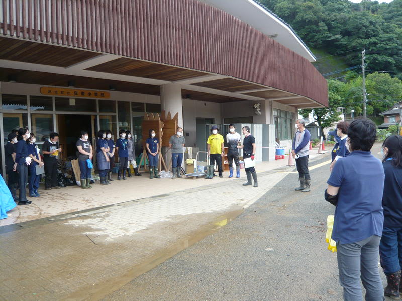 今日も雨。復旧作業が思うように進まない中、多くのボランティアのみなさんの力を借りて、普通教室棟と特別教室棟の1階部分の整理に当たりました。