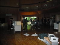 朝からの雨にもかかわらず、町内各学校の先生方や保護者の皆さんに協力していただきながら、室内を中心に作業を行いました。