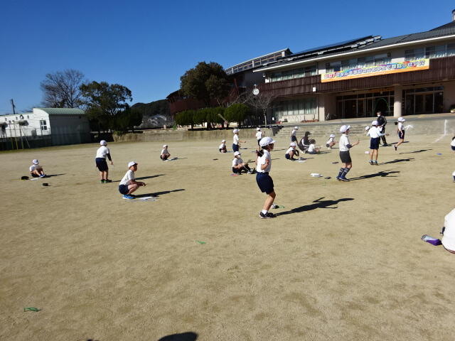 体育では、持久走となわとびを行っています。