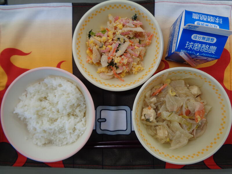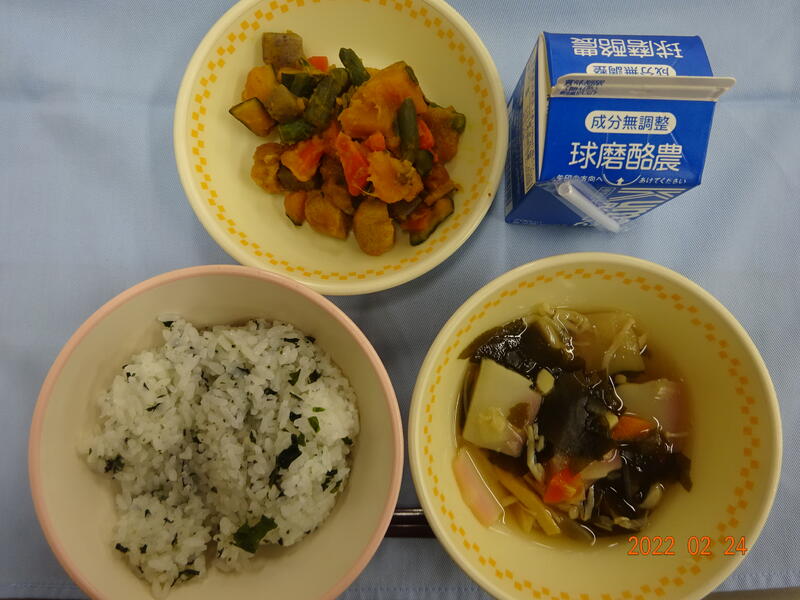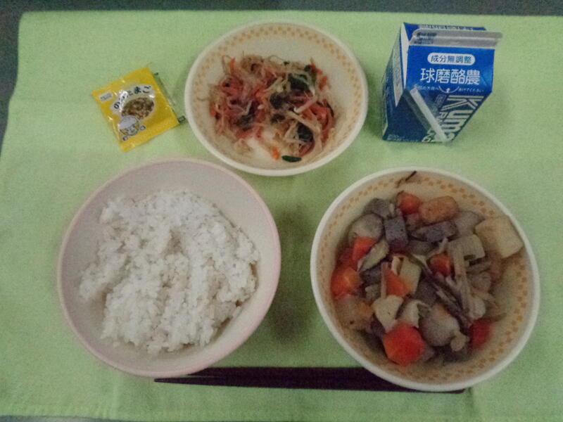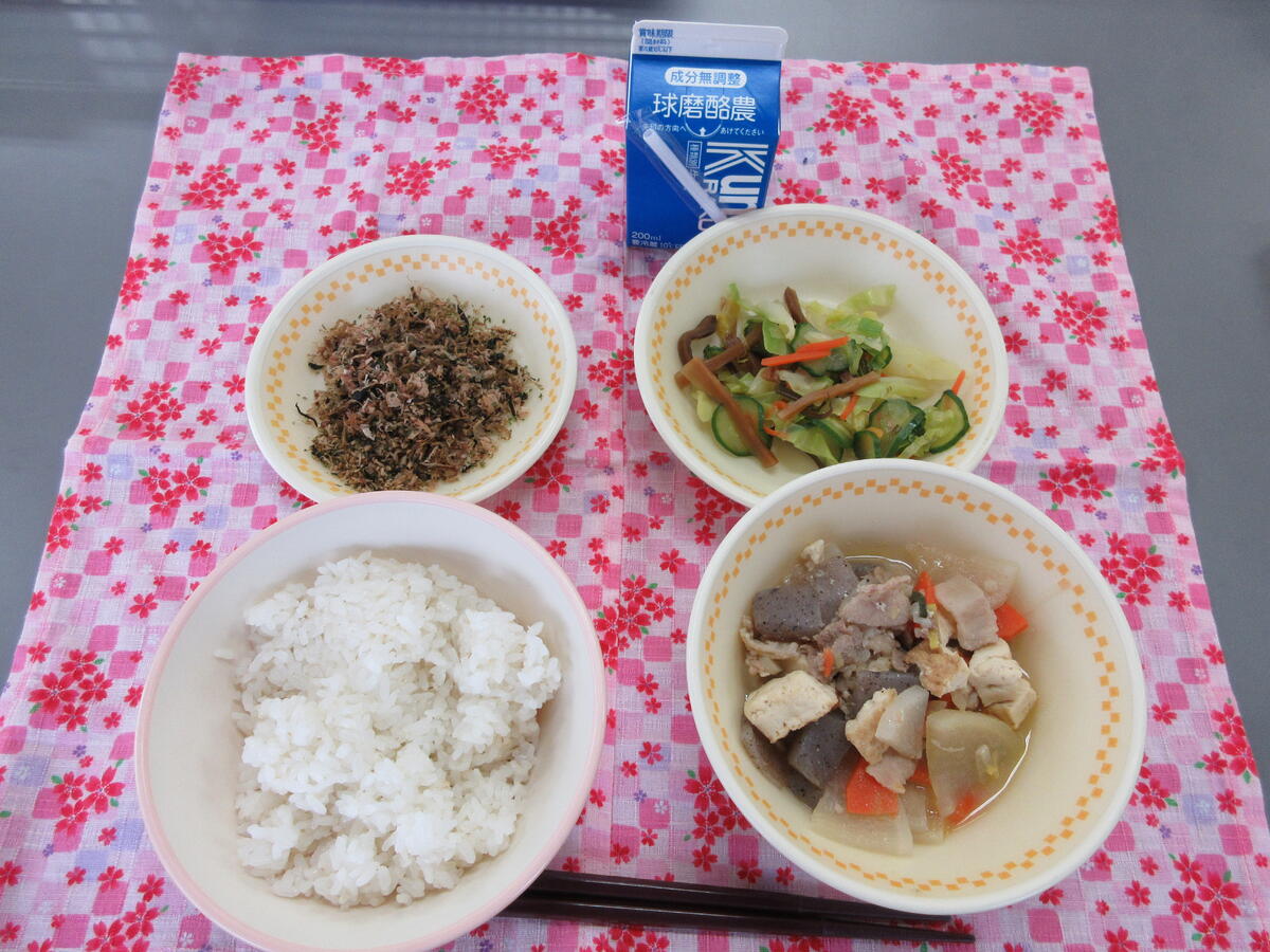 今日の献立は・・・味の旅シリーズ「高知県」で、麦ごはん、ぐる煮、土佐和え、のりたまふりかけ、牛乳 でした。