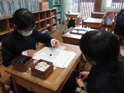 図書室の本を一冊借りると「本のおみくじ」が一枚引けるという取り組みが始まりました。名付けて「どの本読もうか運試し」です。国語の時間に、なかよし1組のみんなで本を借りに行きました。おみくじは、1・2・3年生用と4・5・6年生用に分かれていて、一人一人が一枚ずつ引いてみました。おみくじには、ラッキーアイテムやおすすめの本の紹介が書いてあります。「三学期もたくさん読むぞ」の願いを込めて、図書入り口の「おみくじの木」に結び付け、さっそく借りた本を読み始めました。
