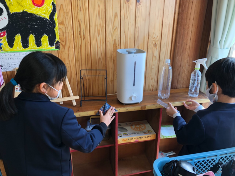 子どもたちが使いやすいように、保健室前に設置しました。