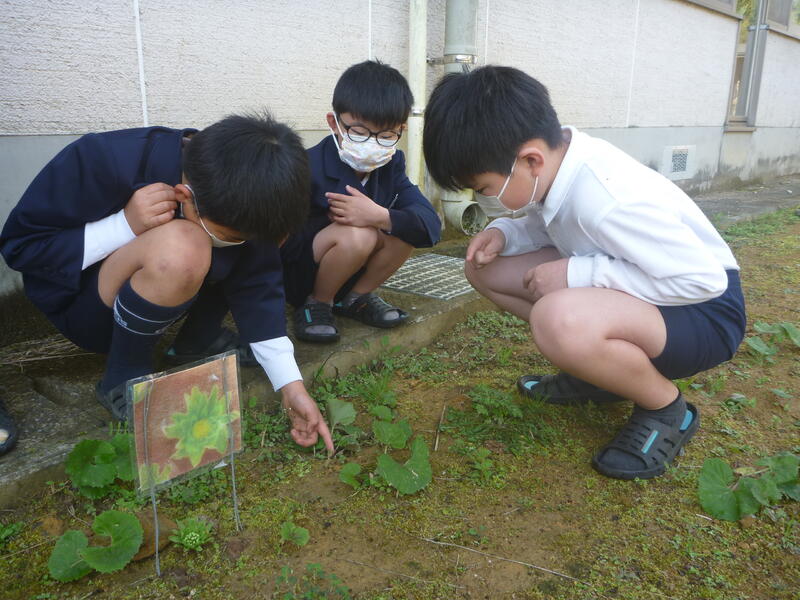 なかよし1組では、国語で「ふきのとう」の学習を終えたばかりです。佐敷小学校の中庭には、フキが植えてるので、ひょっとしたらふきのとうが出ているのではないかなと思って、みんなで中庭を探してみました。すると、「あった!あった!」かわいらしいふきのとうがたくさん見つかりました。先週末に見つけて、ふきのとうのプレートを立て、毎日観察しているのですが、ここ数日の温かさでぐんぐん生長し、つぼんでいたものが、すっかり開いて中の花のかたまりが見えています。今日は新たに4つ顔を出し、全部で13個になりました。塔が建って花が開いていくのが楽しみです。