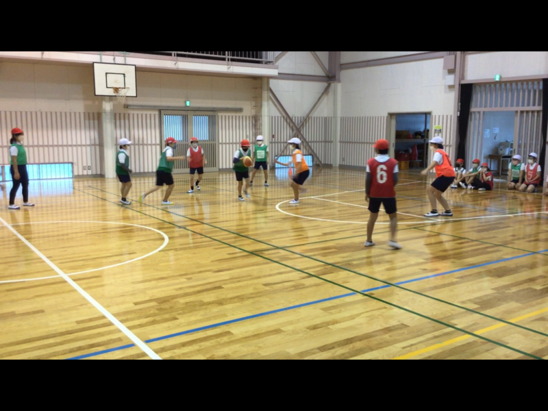 今月は体育の授業で「バスケット」を行っています。初めて授業をしたときは経験している子供が少なく、どうなるのか不安でしたが、今では、ドリブルやパスも上達し、シュートも何度か入り試合らしくなってきました。今日のめあては、「ボールをもっていない時の動きを考えよう」でした。今までは、ボールに集まっていた子供たちでしたが、今日は、コートを広く使い、スペースを考えたプレーも見られました。