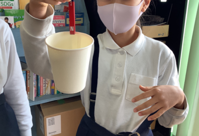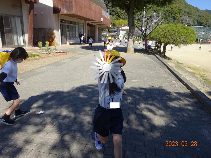 1年生は、生活科で紙コップとストローを使って風車を作ってみんなで楽しく遊びました。