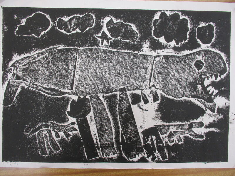 A4版位の板に、下絵を描いてクーピーで塗りました。