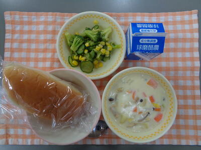 献立:ミルクパン、クリームシチュー、イタリアンサラダ、牛乳