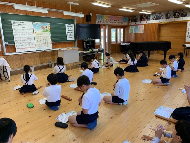 4年生はリコーダーで「歌のにじ」という曲を練習しています。