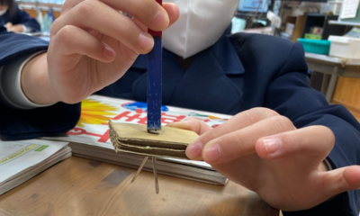 3年生の図工では、ビー玉を転がして遊ぶゲーム盤の制作をしています。