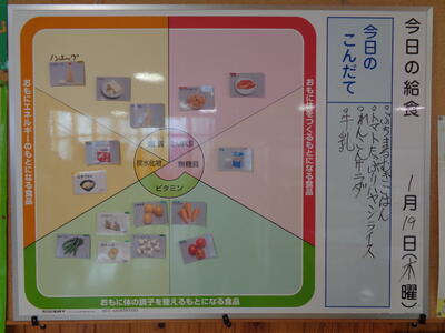 【感想】今日は、学校給食記念日でした。当時は、おにぎり・塩じゃけ・漬物が出されたということで