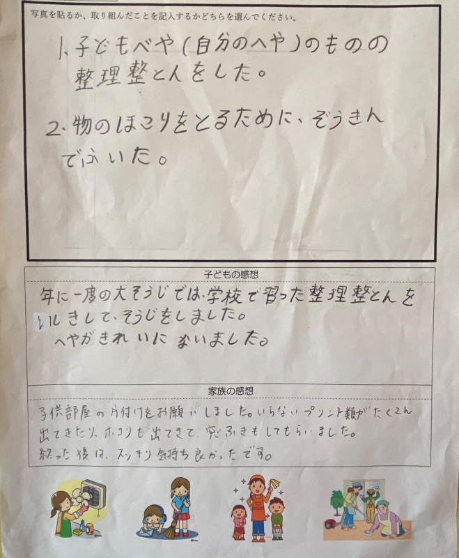 それぞれのご家庭でいろいろな場所の大掃除。とてもきれいになったようです。