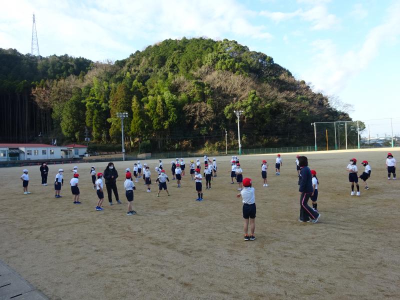 できるだけ密にならないよう持久走グループと縄跳びグループに分けて、それぞれ少人数で実施しました。さらに、持久走はスタート位置を分けたり、縄跳びは大きな円状に並べたりしながら間隔を取るようにしました。コロナに負けない丈夫な体を作ります。