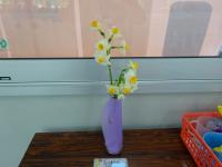 校舎内のいたるところに、栽培委員会の子どもたちが花を飾ってくれています。飾り方や花瓶の使い方もそれぞれのアイディアによるものです。