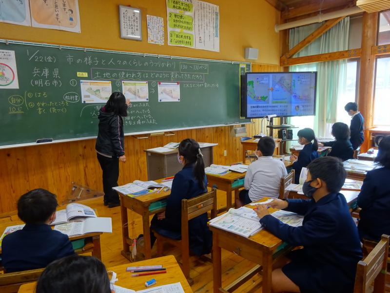 社会科は3年生からスタートします。学校の周囲の様子を中心に学習してきた内容も次第に広がりを見せています。今日の学習では、「土地の使われ方がどのように変わってきたのか」 複数の資料を使って、比較しながら考えてました。