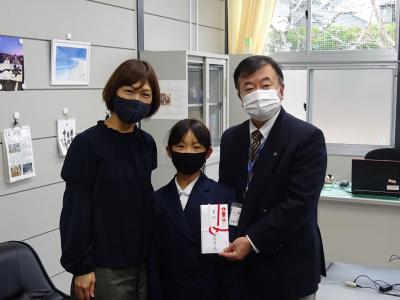 本日、芦北町教育委員会早稲田課長補佐にもご出席いただき、本校PTAの橋本二美可様からの寄付贈呈式を行いました。