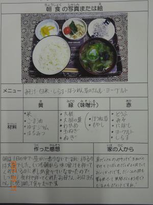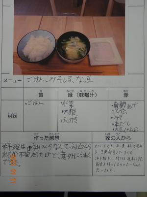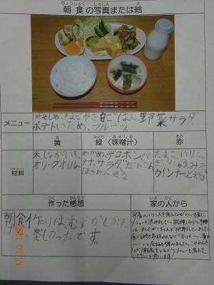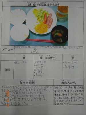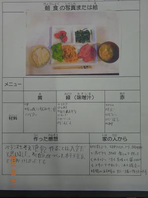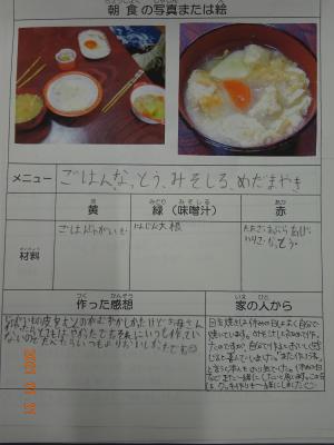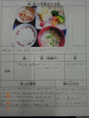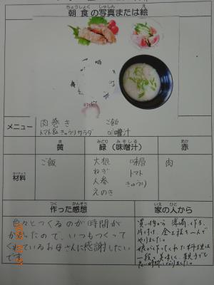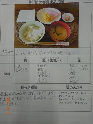 冬休みは忙しい中「朝食(味噌汁作ろうデー」に取り組んでいただきありがとうございました。とても美味しそうな朝食ができていました。これからも時間を見つけてお子さんと一緒に料理を作る機会が増えるといいですね。そのうちお子さんが一人で作ってくれるようになると嬉しいですよね。既に一人で作った子どももいてびっくりでした。