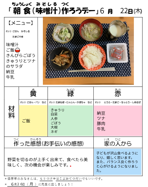 「朝食作ろうデー」お世話になりました。今日は、いくつか紹介します。