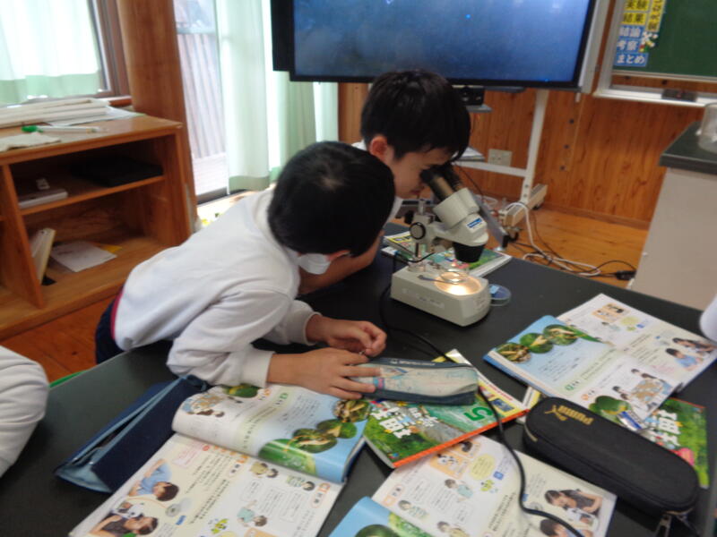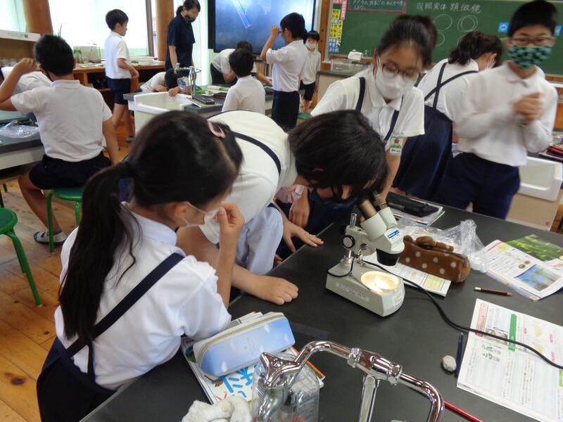 顕微鏡を使って学習しています!(5年)