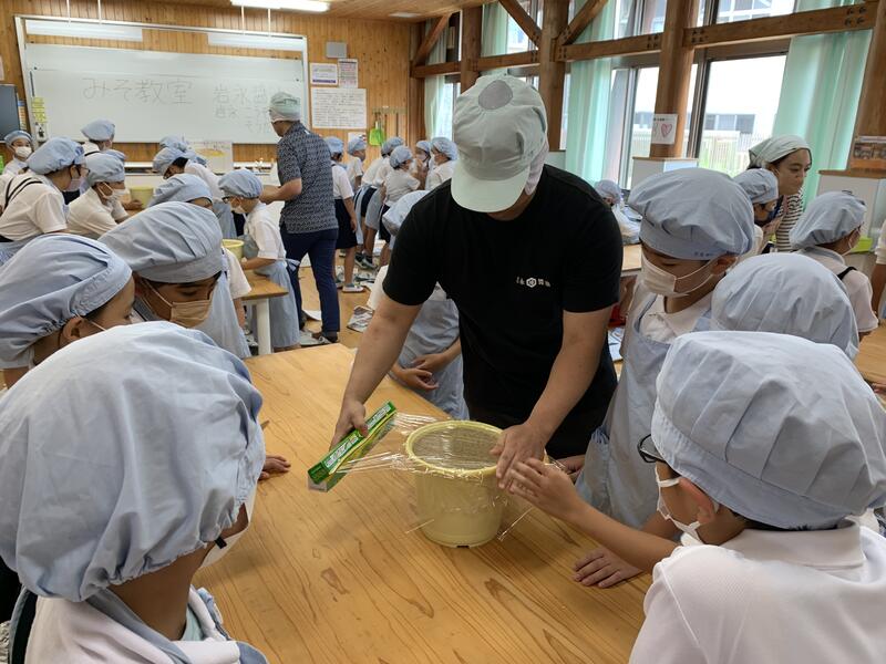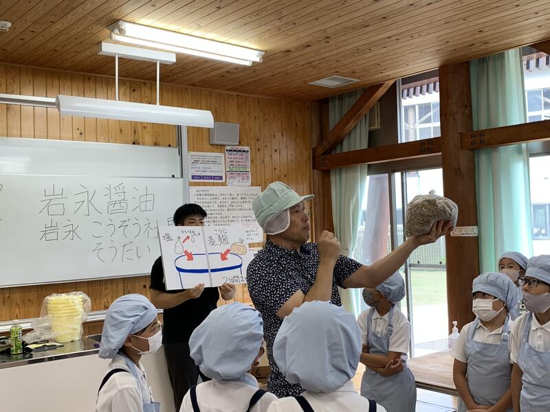 岩永醬油さんに来ていただき、みその作り方を分かりやすく教えていただきました。