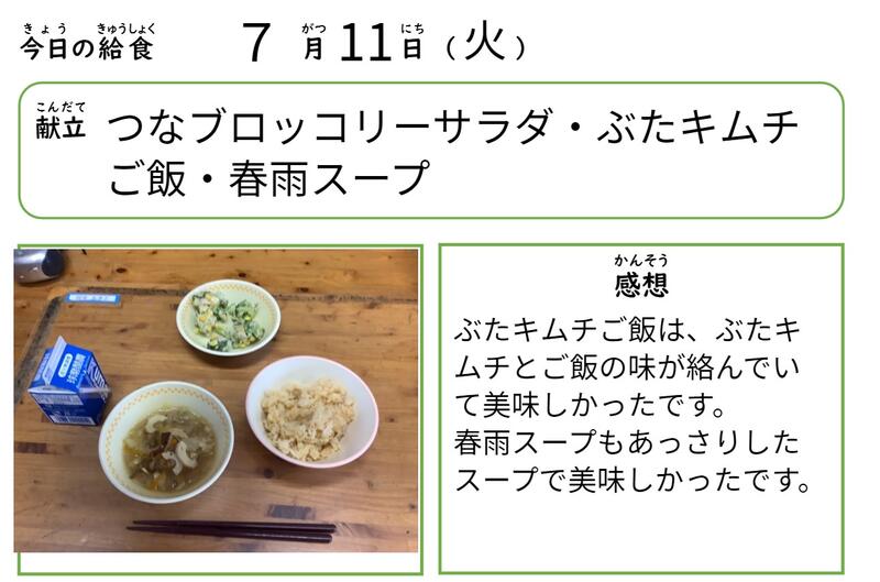 7月もおいしい給食が楽しみです。