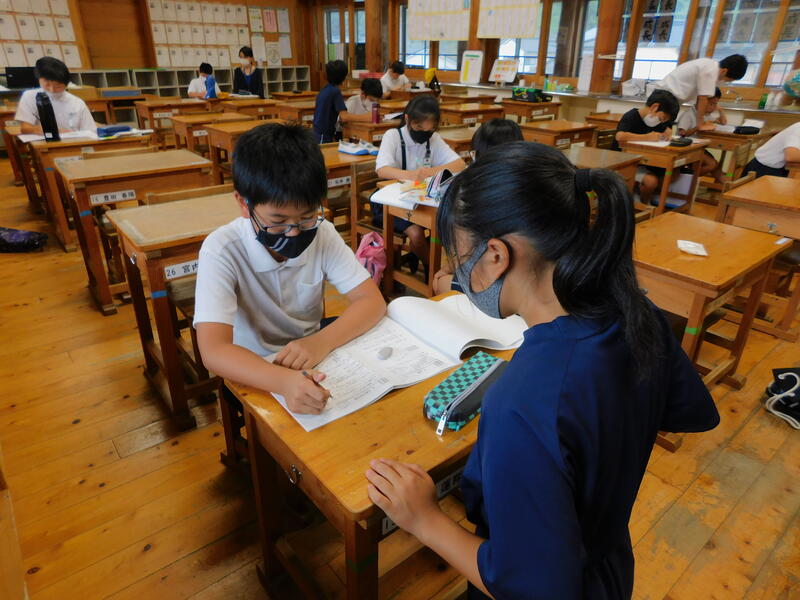 小学生はとても集中して学習に取り組んでいました。
