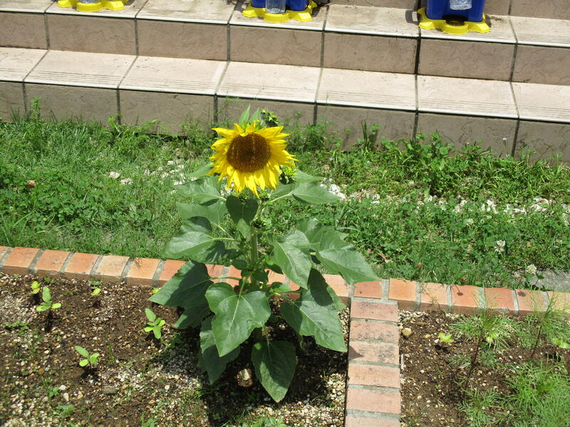 生活科の時間に季節の草花の観察をしました。花壇に咲いているひまわり、育てているあさがお、体育館の近くに生えているおおばこ。子ども達は、それぞれの植物の形や色などを一生懸命に観察していました。