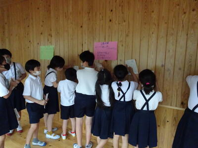 子ども達は、普段は行くことが少ない棟へ行くことも楽しかったようで、笑顔で校内を歩く姿が見られました。また、高学年と低学年は同じ問題にしていたため、低学年と一緒に問題を解いたり、迷子になっている低学年を連れて一緒に回ったり、頼もしい高学年の姿も見られ、温かい気持ちになりました。