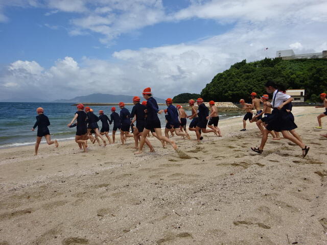 安全を祈願したあとに、6年生が「初泳ぎ」を行いました。