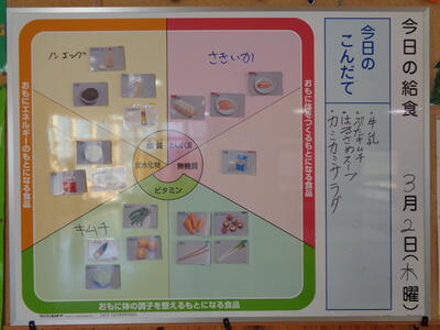 決めたメニューだそうです。「春雨スープ」と「カミカミサラダ」は今年度